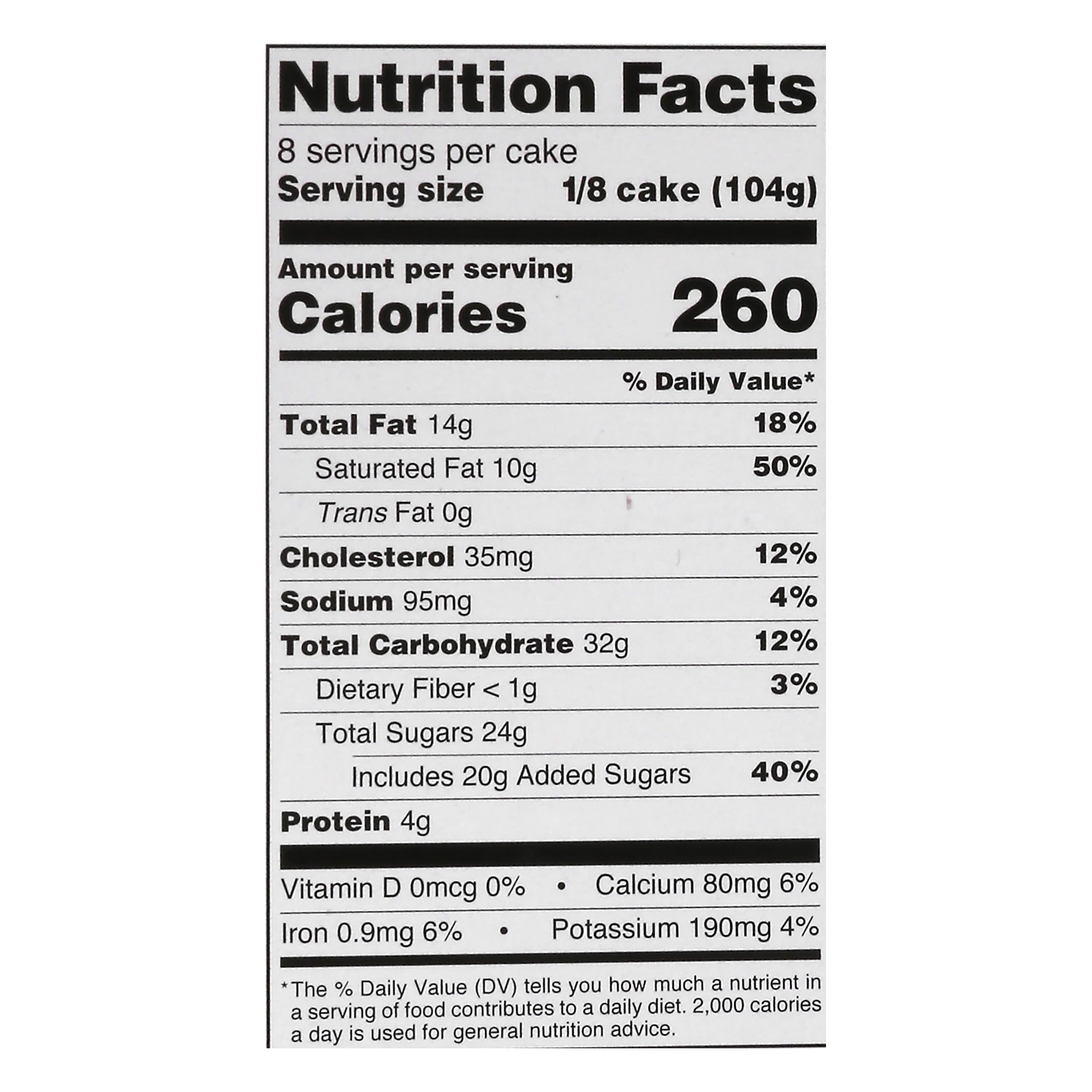 Carrot 8 Cake. Register Sign In. Standard Flavor Nutritional Guide Information includes standard frosting Product Name Servings Per Cake Serving Size Calories per serving Total Fat grams Sat.