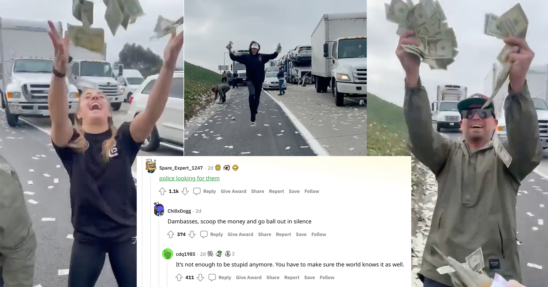 Influencer Gets Roasted For Incriminating Herself After Armored Car Spills Cash Onto Freeway Memebase Funny Memes